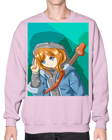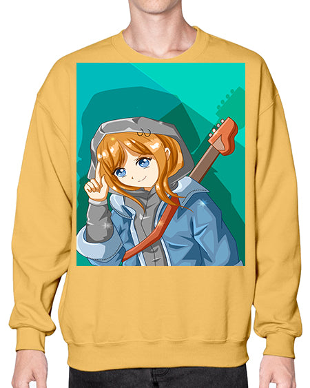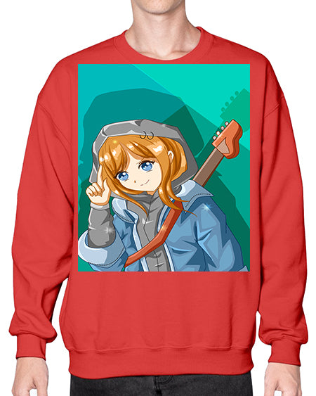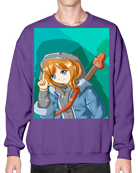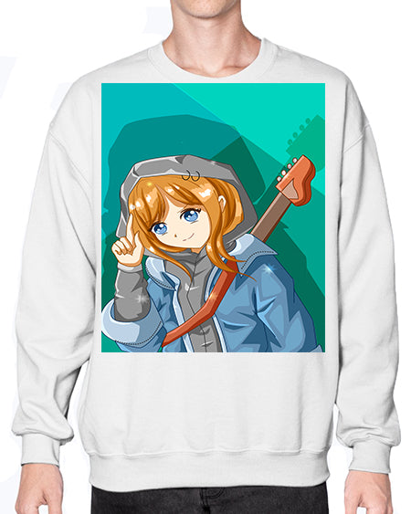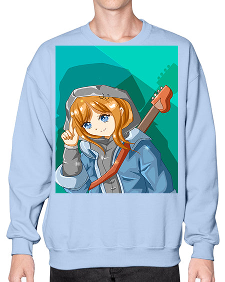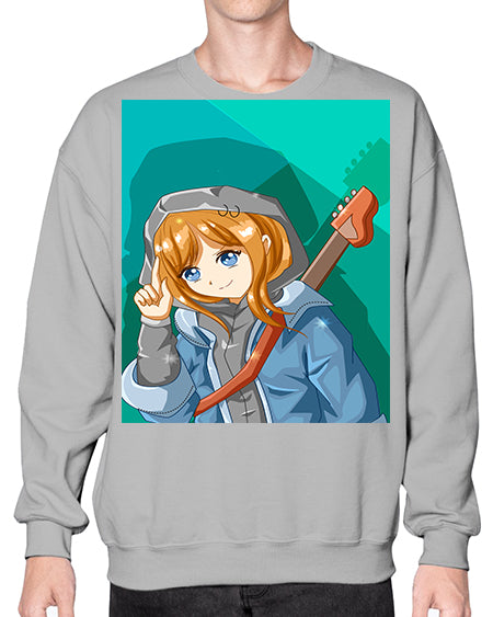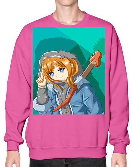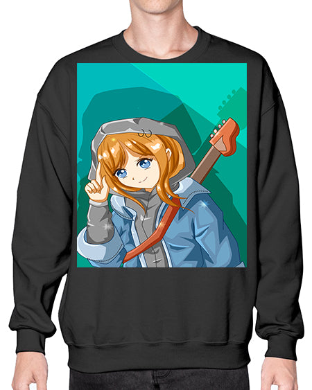 Swag and cute girl with a guitar 50# - anime- Sweatshirt - Crew