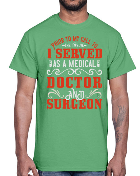 Prior to my call to the Twelve I served as a medical doctor and surgeon Style 345#- medical- Cotton Tee