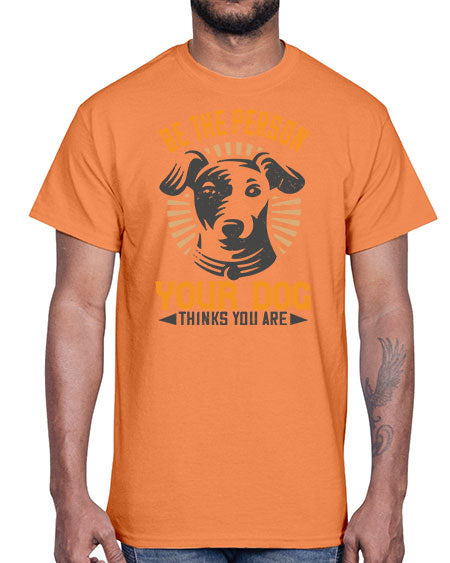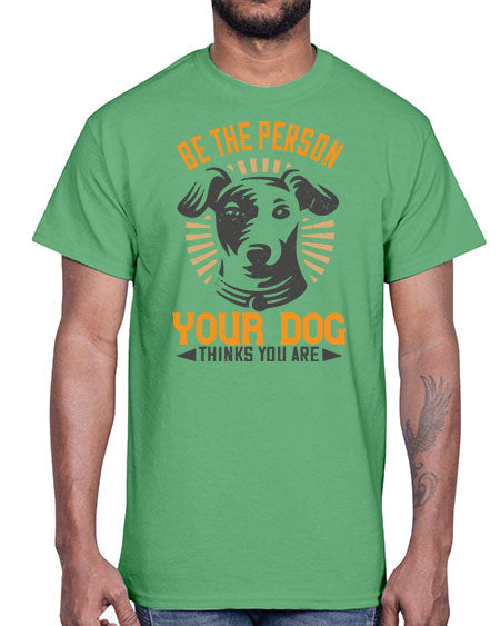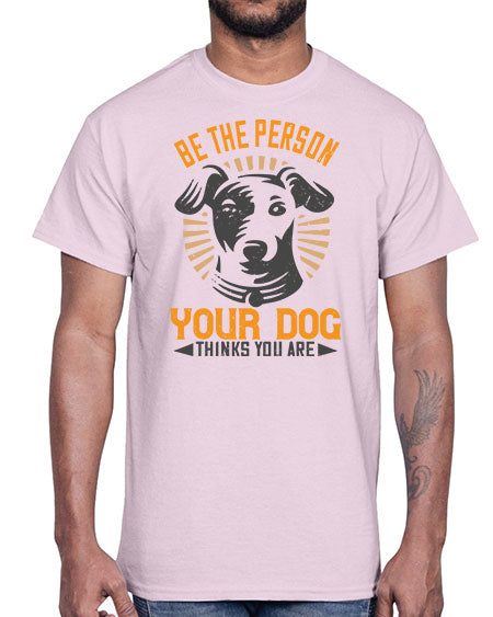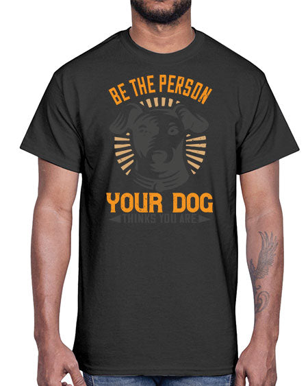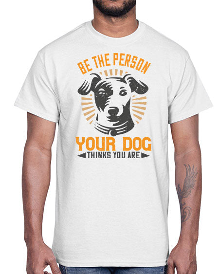 google-site-verification=jVrHOkW2AsgL_ozwUikqFQE6-Ke6U43Z8aLcUbXT5TE Be The Person Your Dog Thinks You Are Style 50#- dogs- Cotton Tee – Tshirt Unlimited