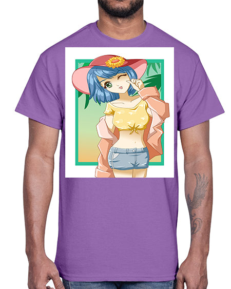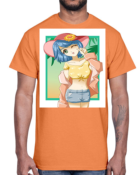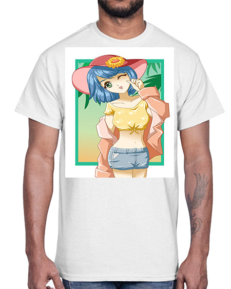Beautiful and sexy girl on the beach with cute hat in summer 1#- anime- Cotton Tee