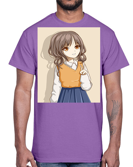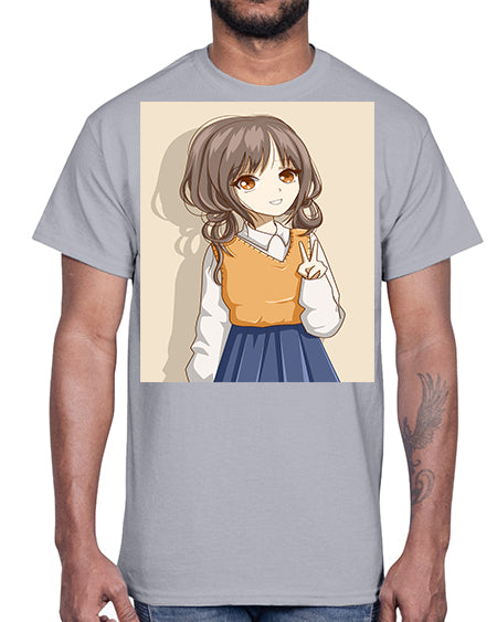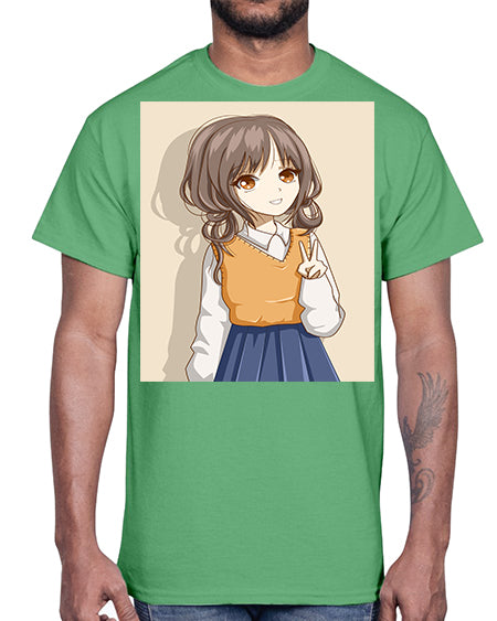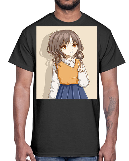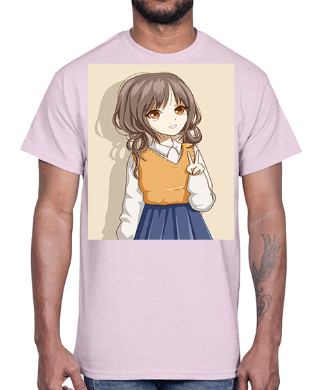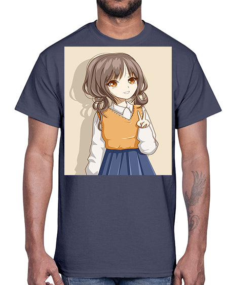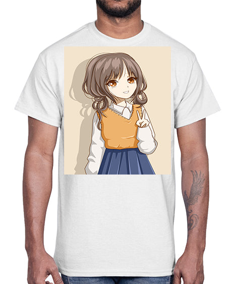 Cute and beautiful girl brown hair wearing uniform 71#- anime- Cotton Tee