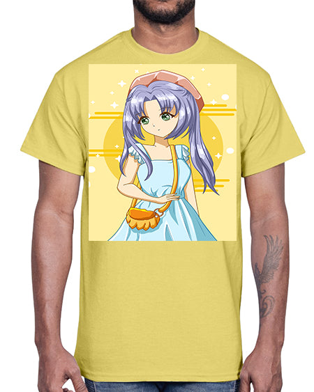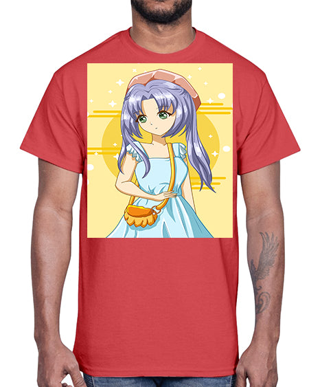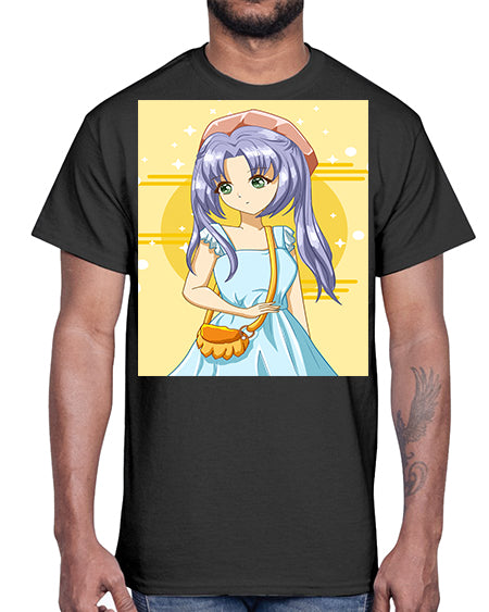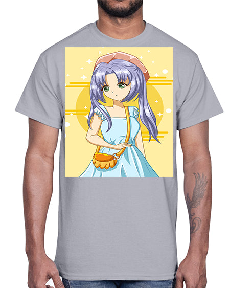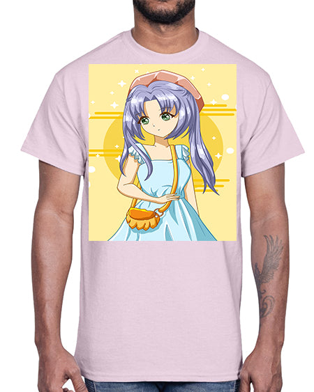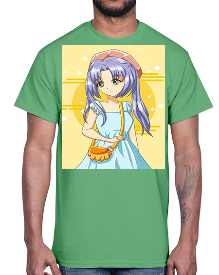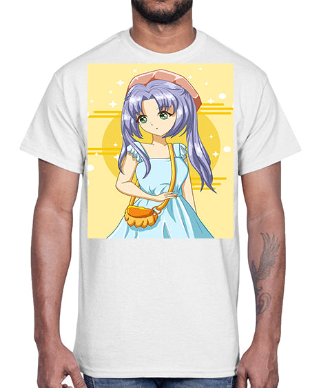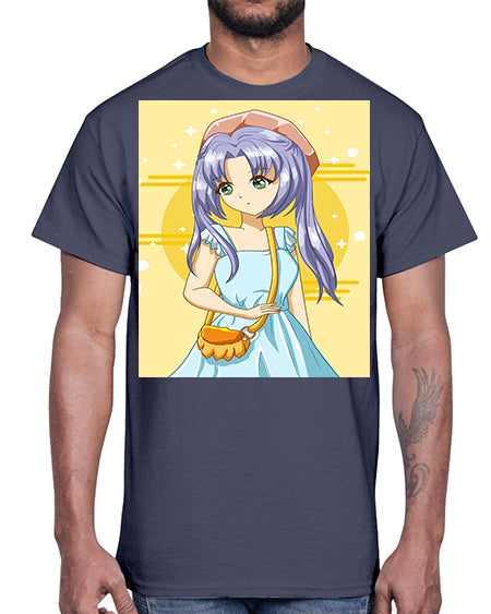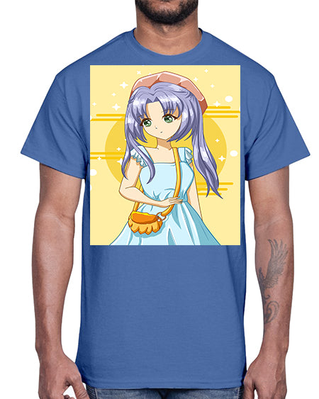 Cute and soft girl blue hair with blue dress in summer holiday 60#- anime- Cotton Tee