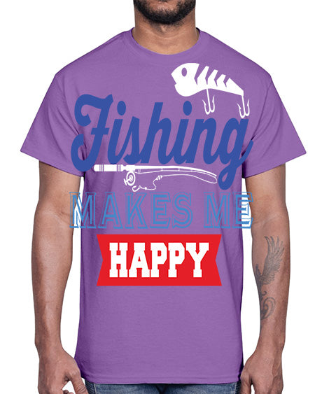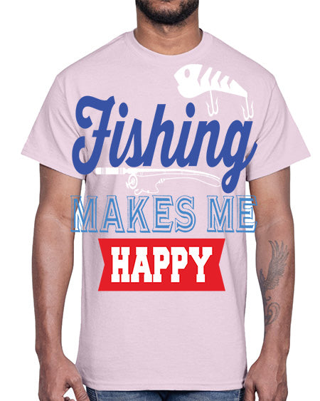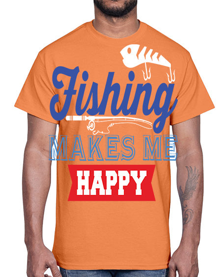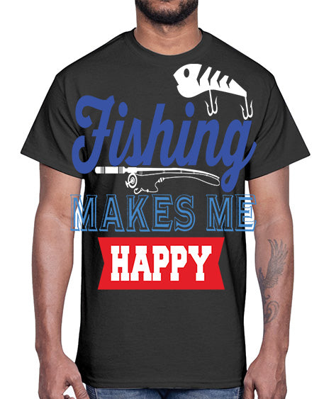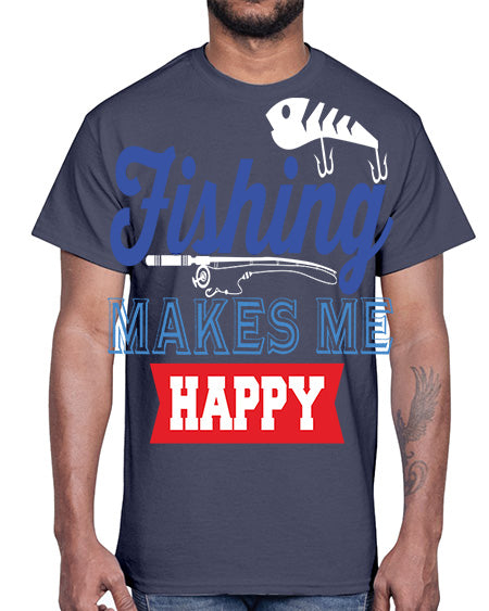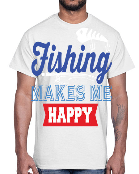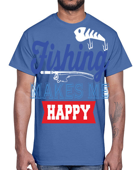 fishing makes me happy png 78#- shark-fish- Cotton Tee