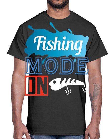 fishing mode on png 77#- shark-fish- Cotton Tee