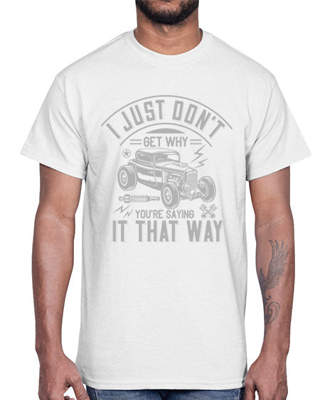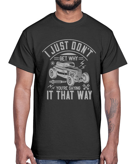 I just dont get why youre saying it that way 101#- hot rod- Cotton Tee