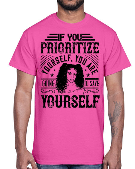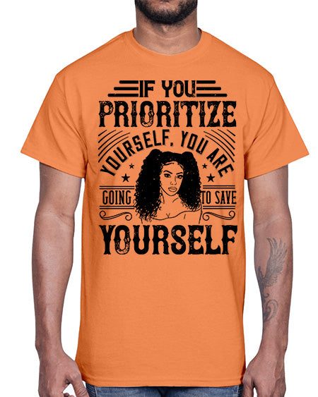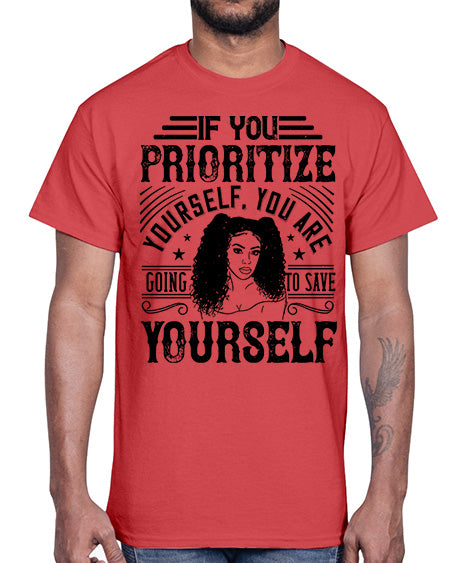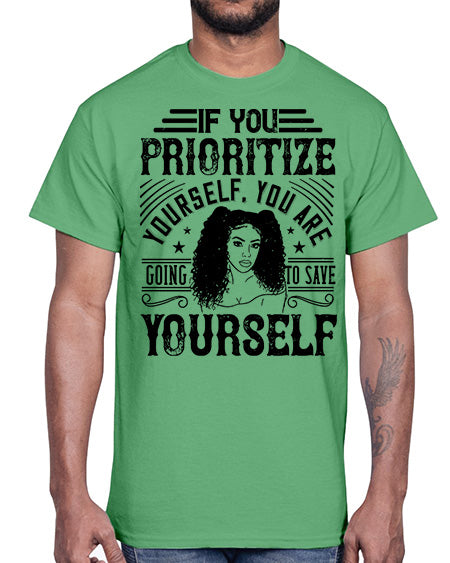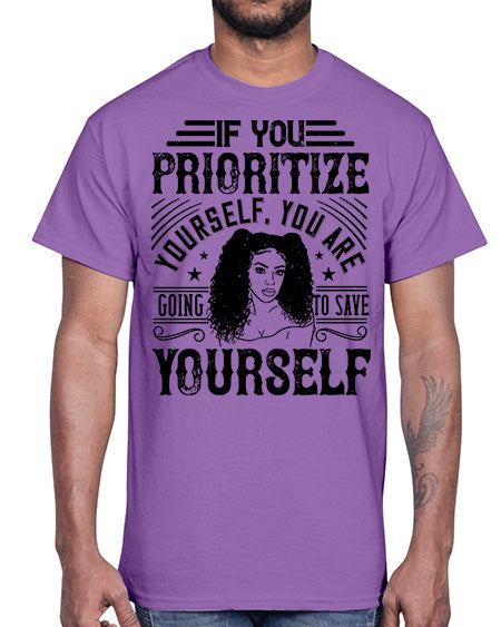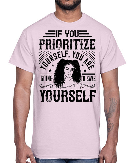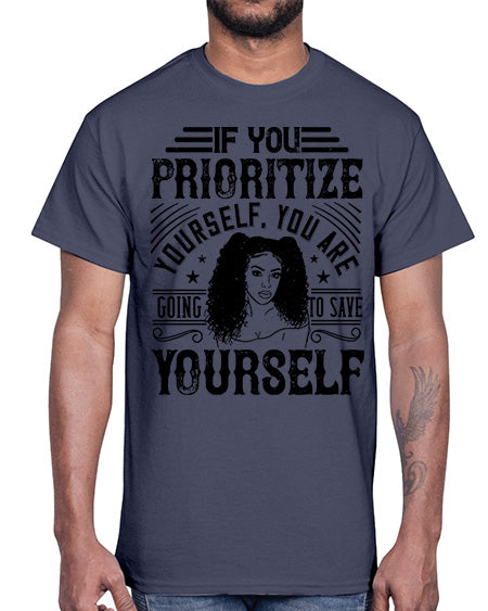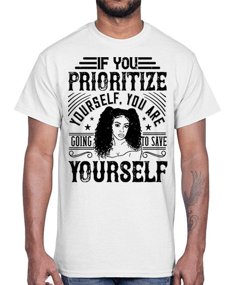 If you prioritize yourself you are going to save yourself Style 3#- black afro- Cotton Tee