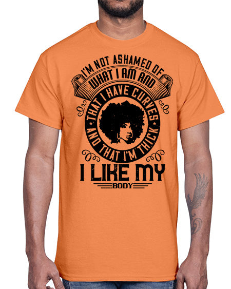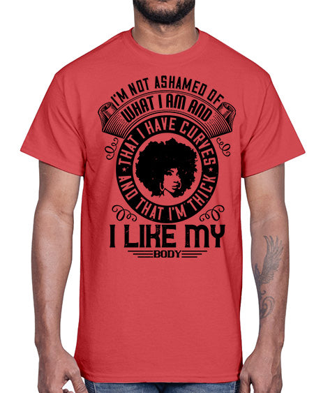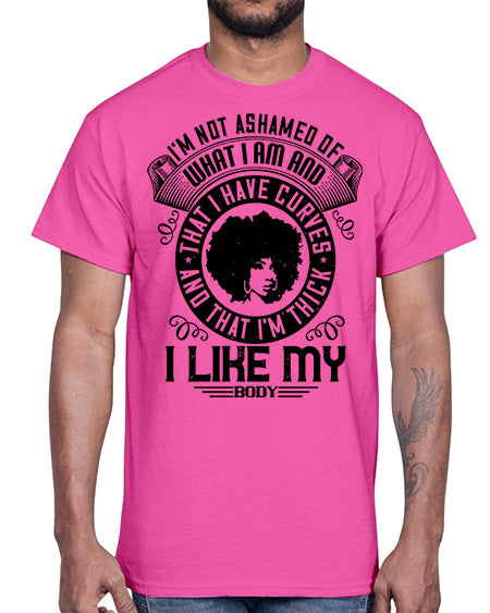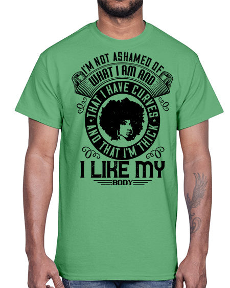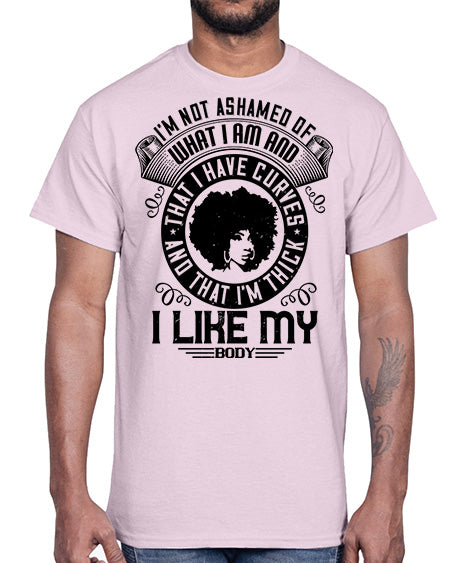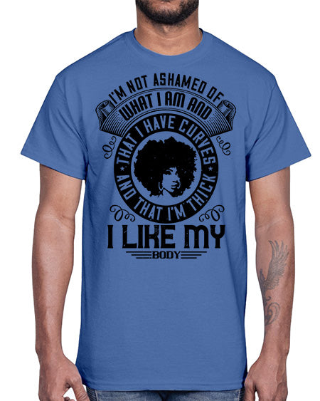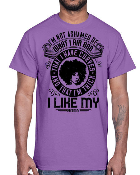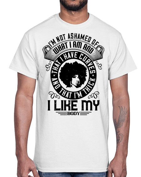 Im not ashamed of what I am and that I have curves and that Im thick I like my body Style 22#- black afro- Cotton Tee