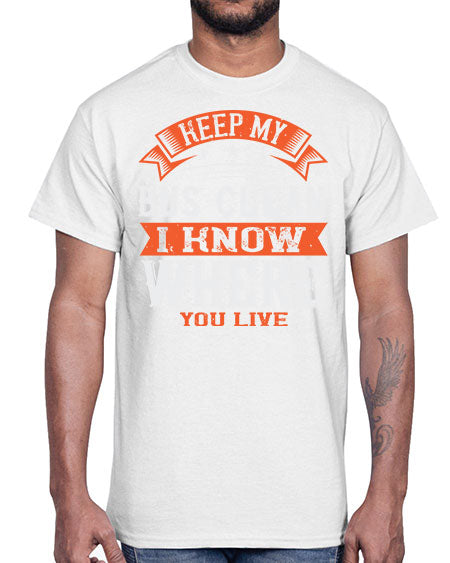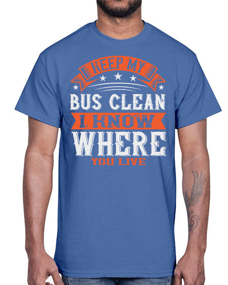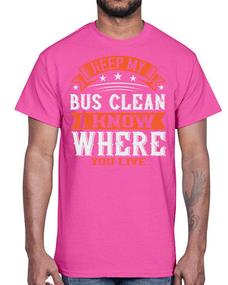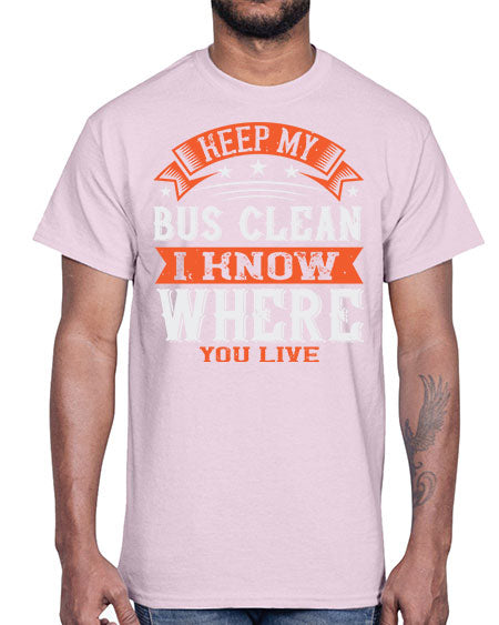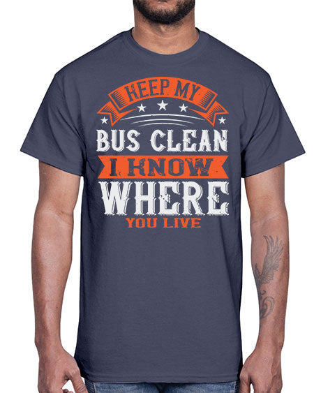 keep my bus clean i know where you live Style 1031#- Bus Driver- Cotton Tee