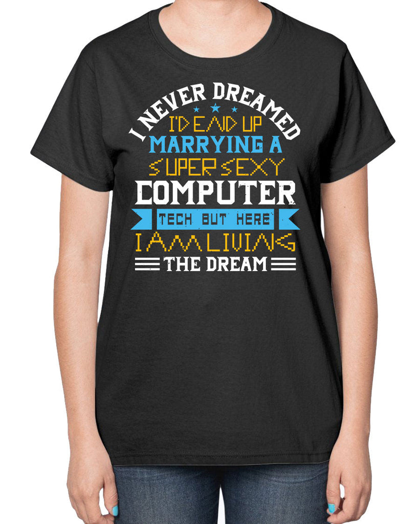 23 I never dreamed Id end up marrying a super sexy computer - Computer- Ladies T-Shirt