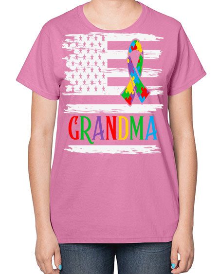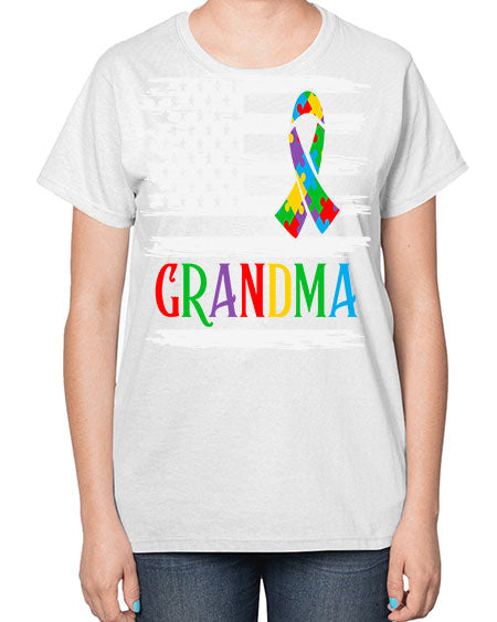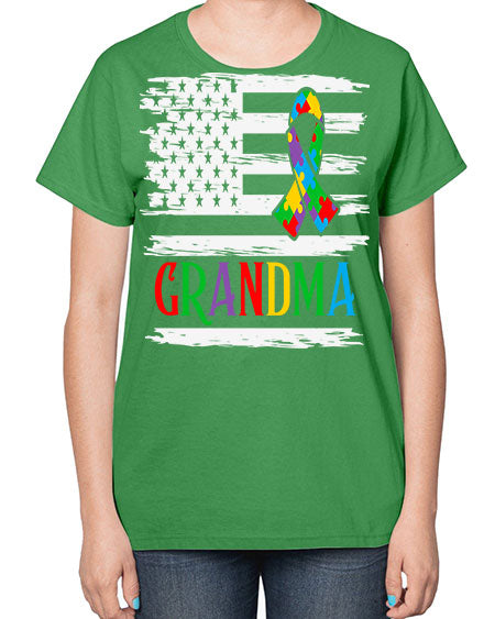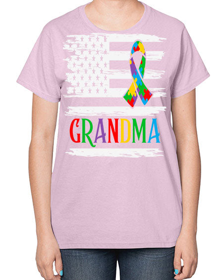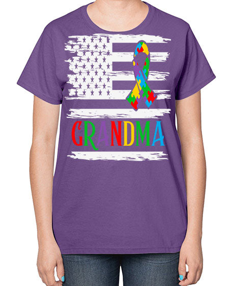 autism grandma american flag 31# - autism- Ladies T-Shirt