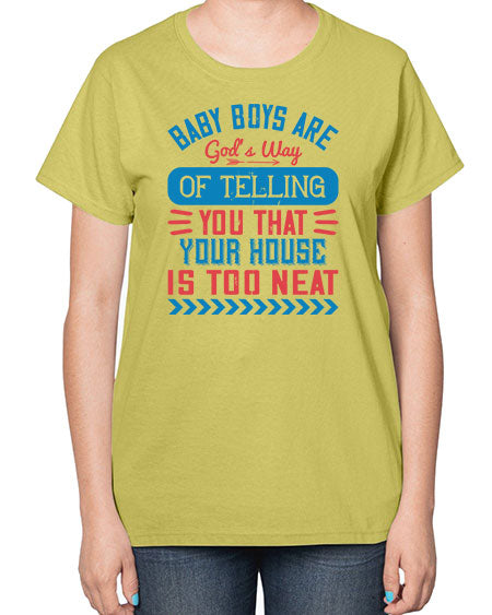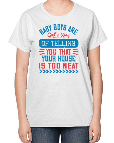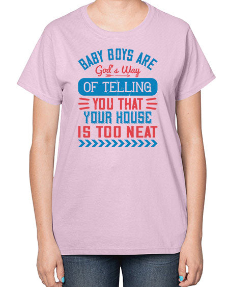 Baby boys are God’s way of telling you that your house is too neat Style 274# - baby- Ladies T-Shirt