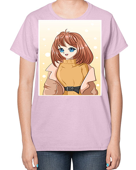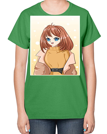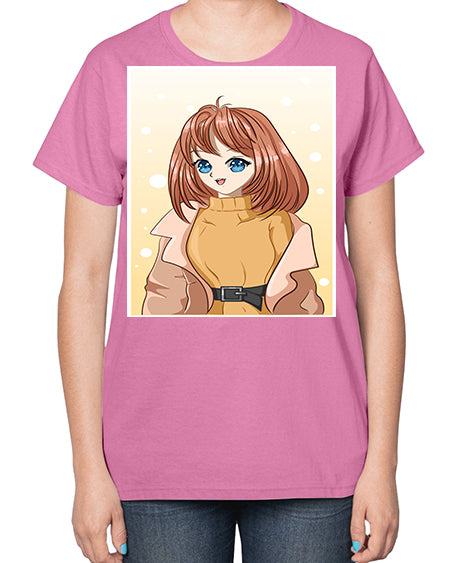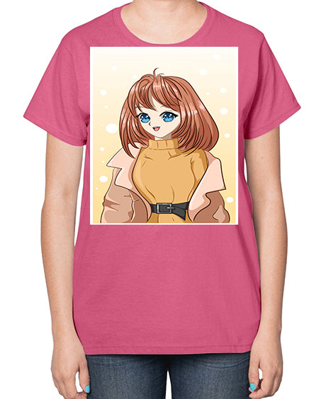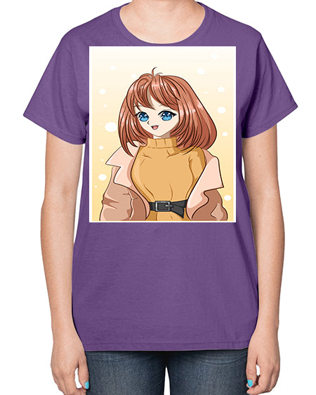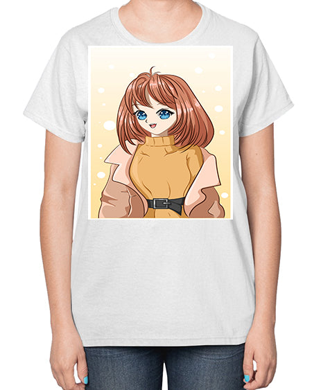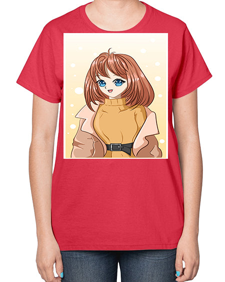Beautiful girl short hair wearing winter clothes 168# - anime- Ladies T-Shirt