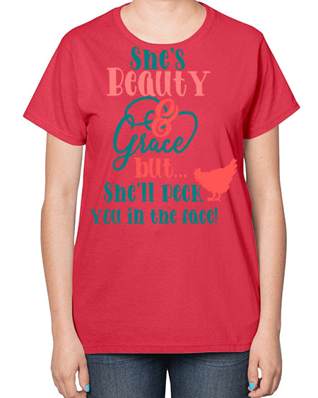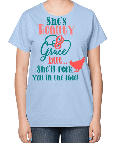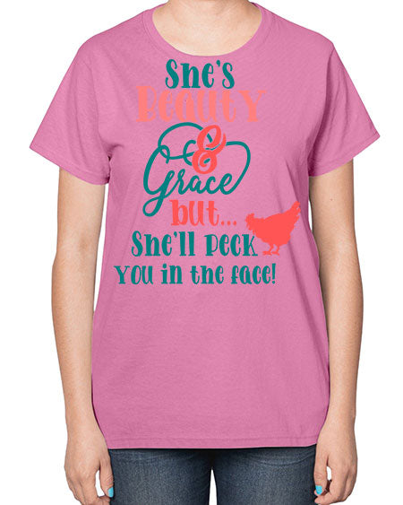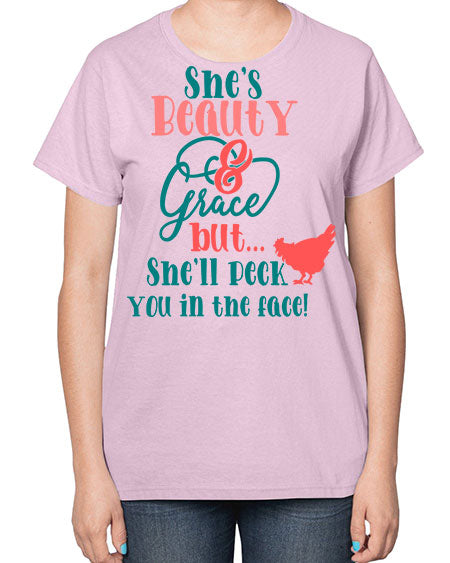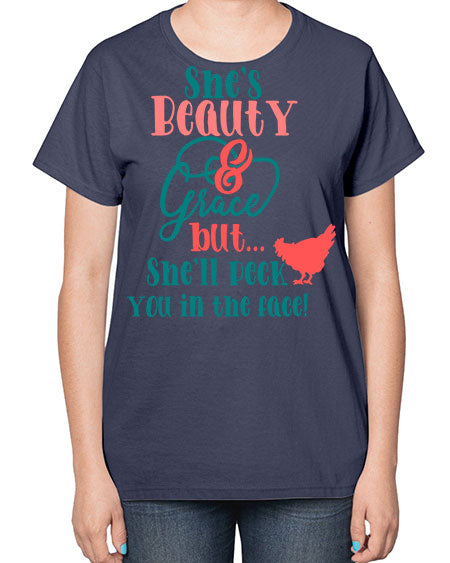 Chicken Beauty And Grace - chicken- Ladies T-Shirt
