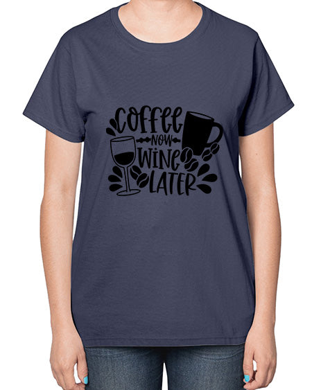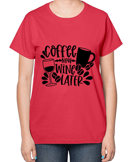 coffee now wine later 842# - wine- Ladies T-Shirt