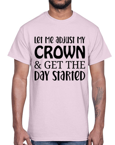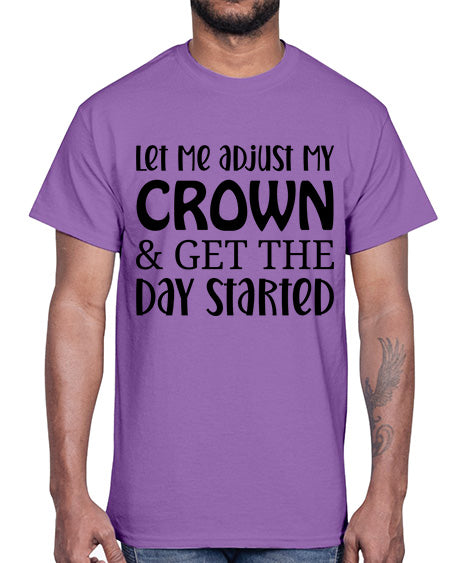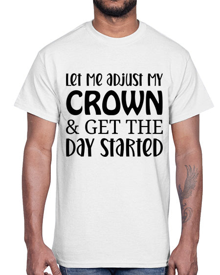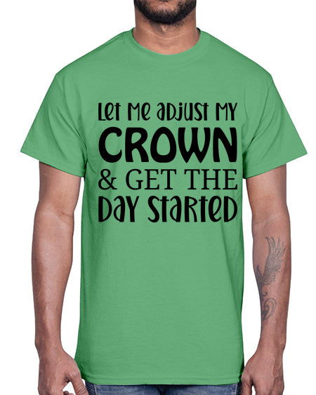 let me adjust my crown and get the day started 714#- funny- Cotton Tee