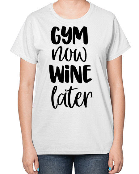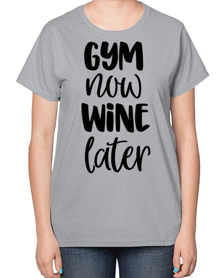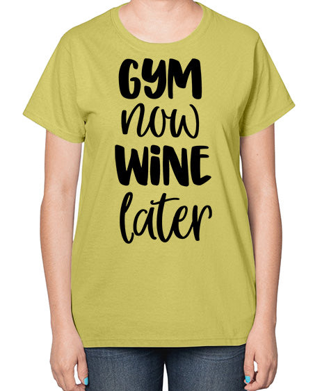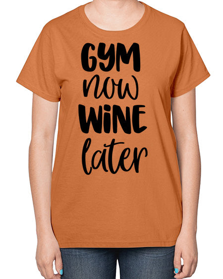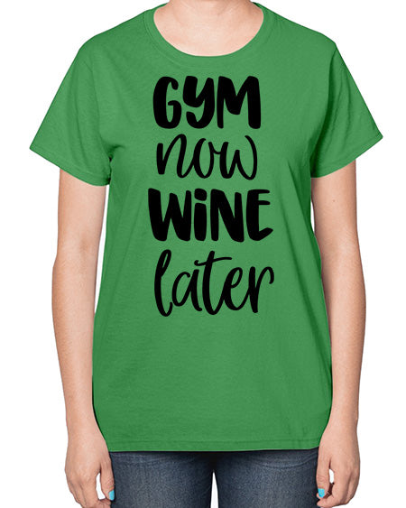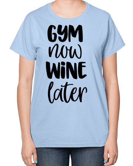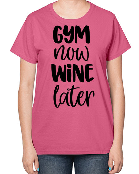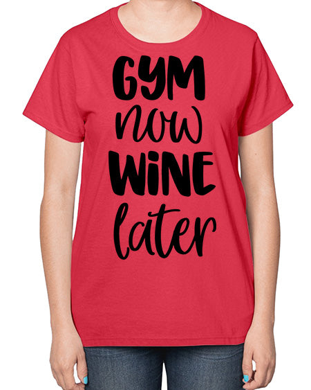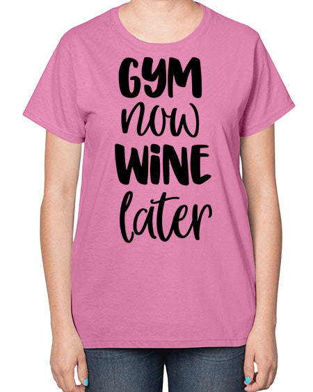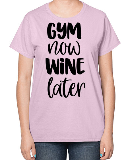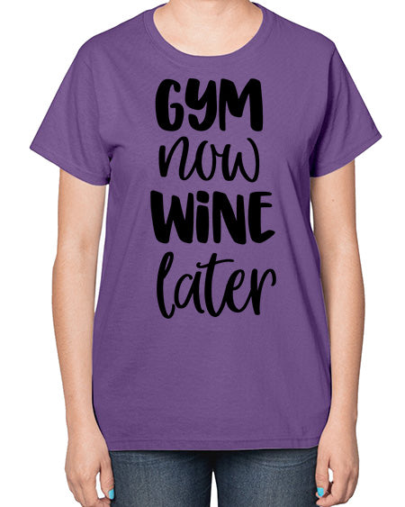 gym now wine later 1025# - wine- Ladies T-Shirt