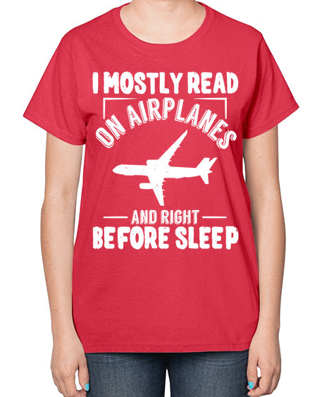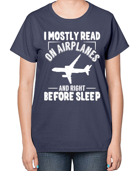 i mostly read on airplanes 25# - airplane- Ladies T-Shirt