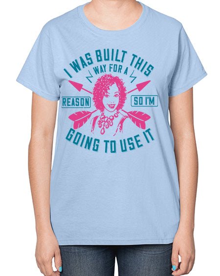 I was built this way for a reason so I’m going to use it Style 24# - black afro- Ladies T-Shirt
