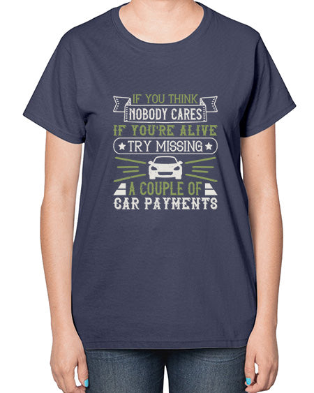 If you think nobody cares if youre alive try missing a couple of car payments 35# - car- Ladies T-Shirt