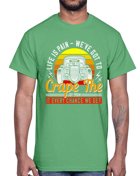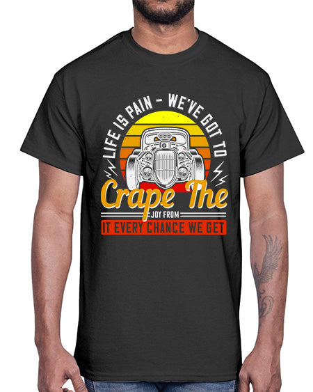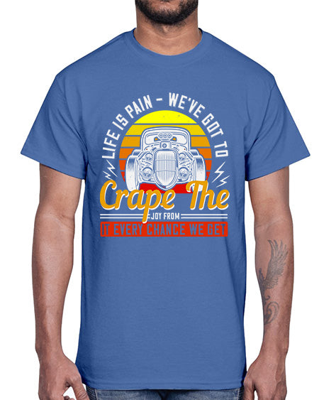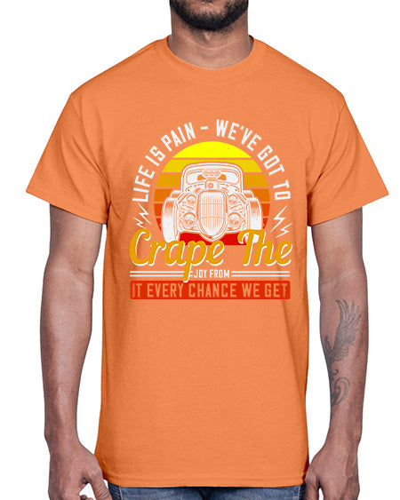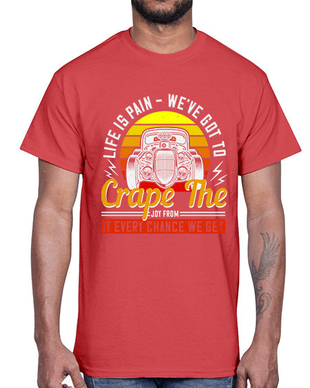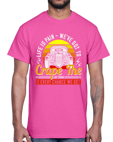Life is pain weve got to scrape the joy from it every chance we get 42#- hot rod- Cotton Tee