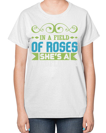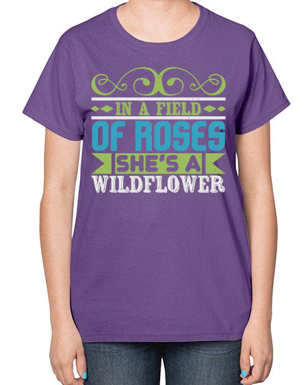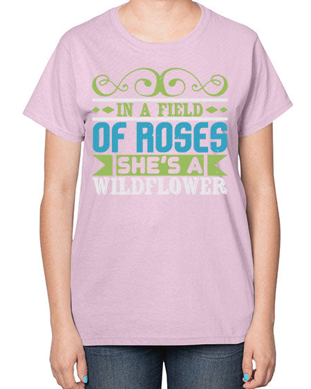 Ina field of Roses shes a wildflower Style 124# - babies- Ladies T-Shirt