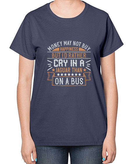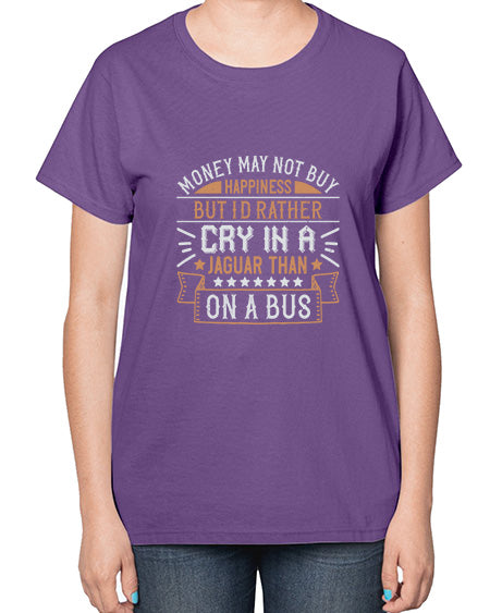 Money may not buy happiness but Id rather cry in a Jaguar than on a buss 43# - car- Ladies T-Shirt