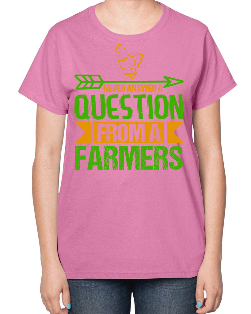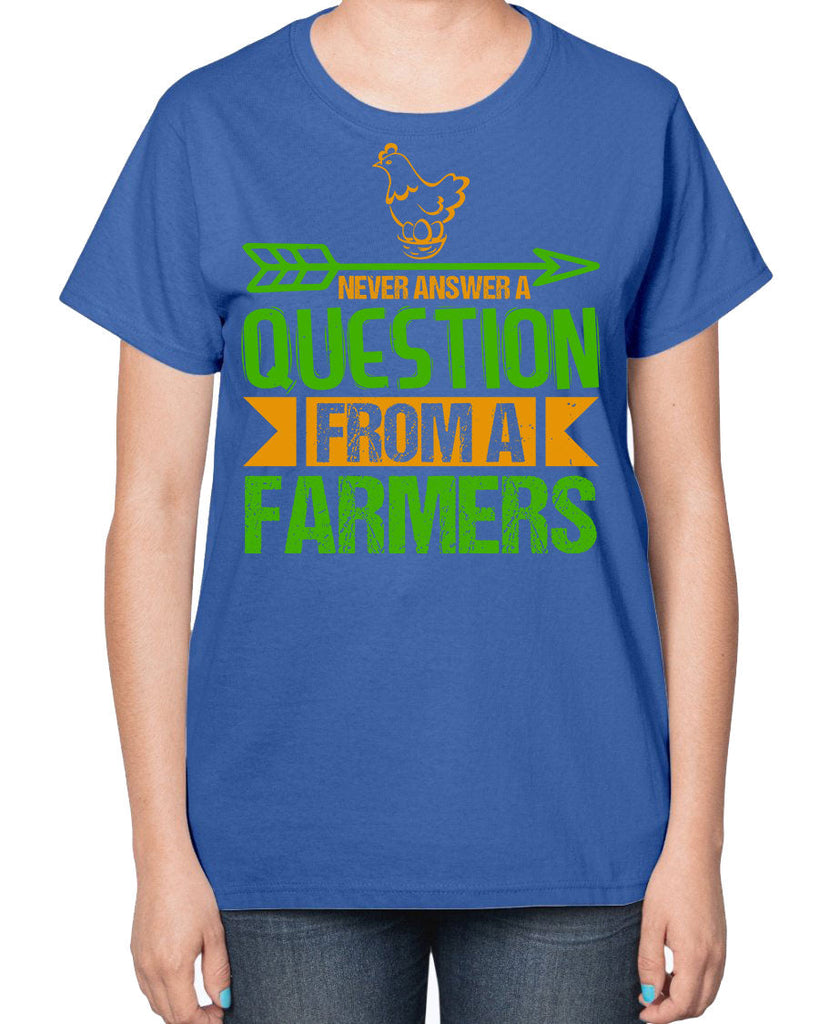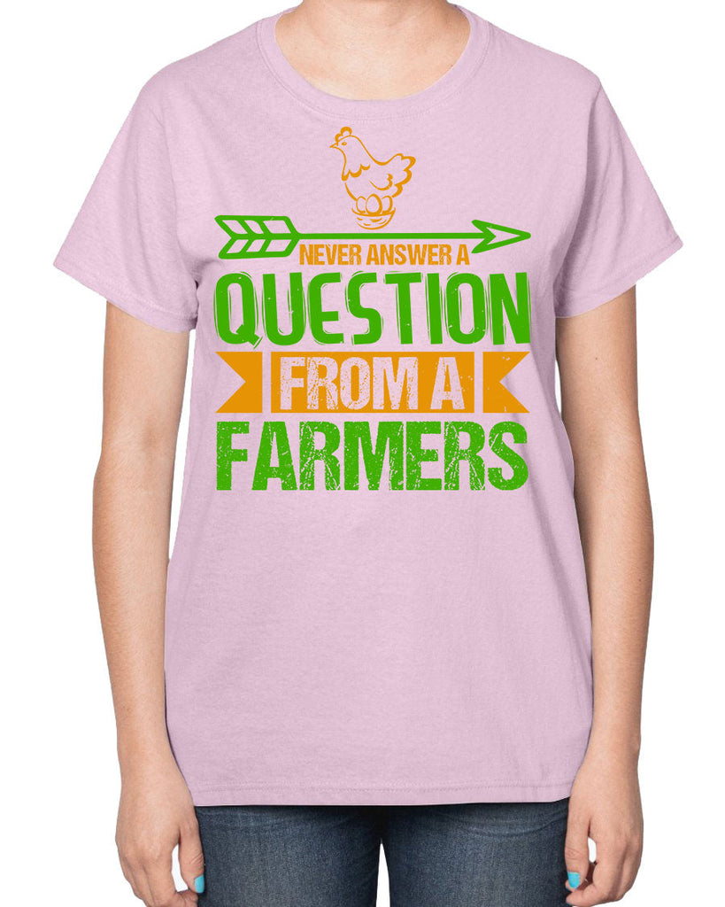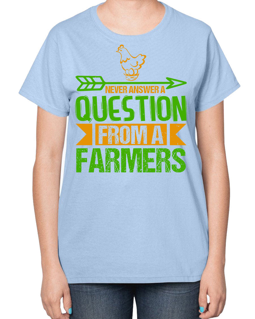 Never answer a question from a farmers - Farm & Garden- Ladies T-Shirt