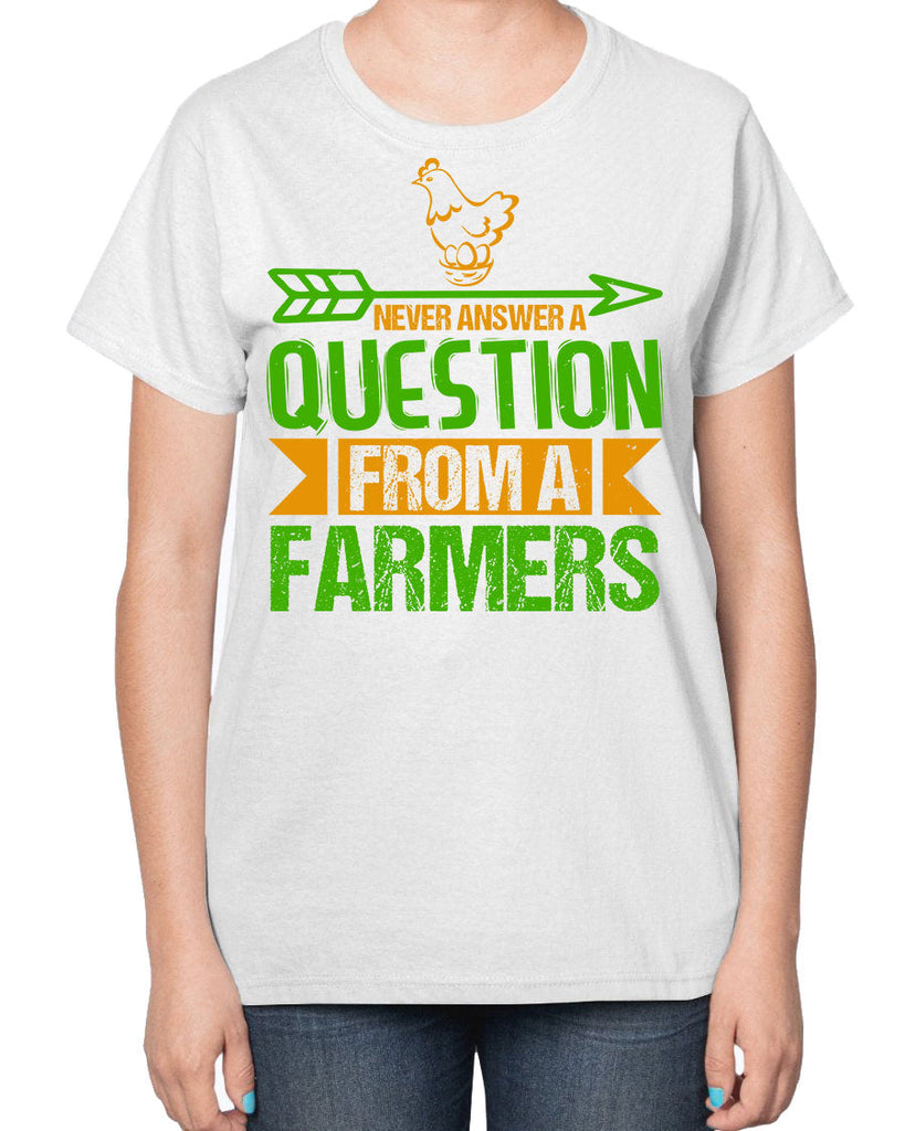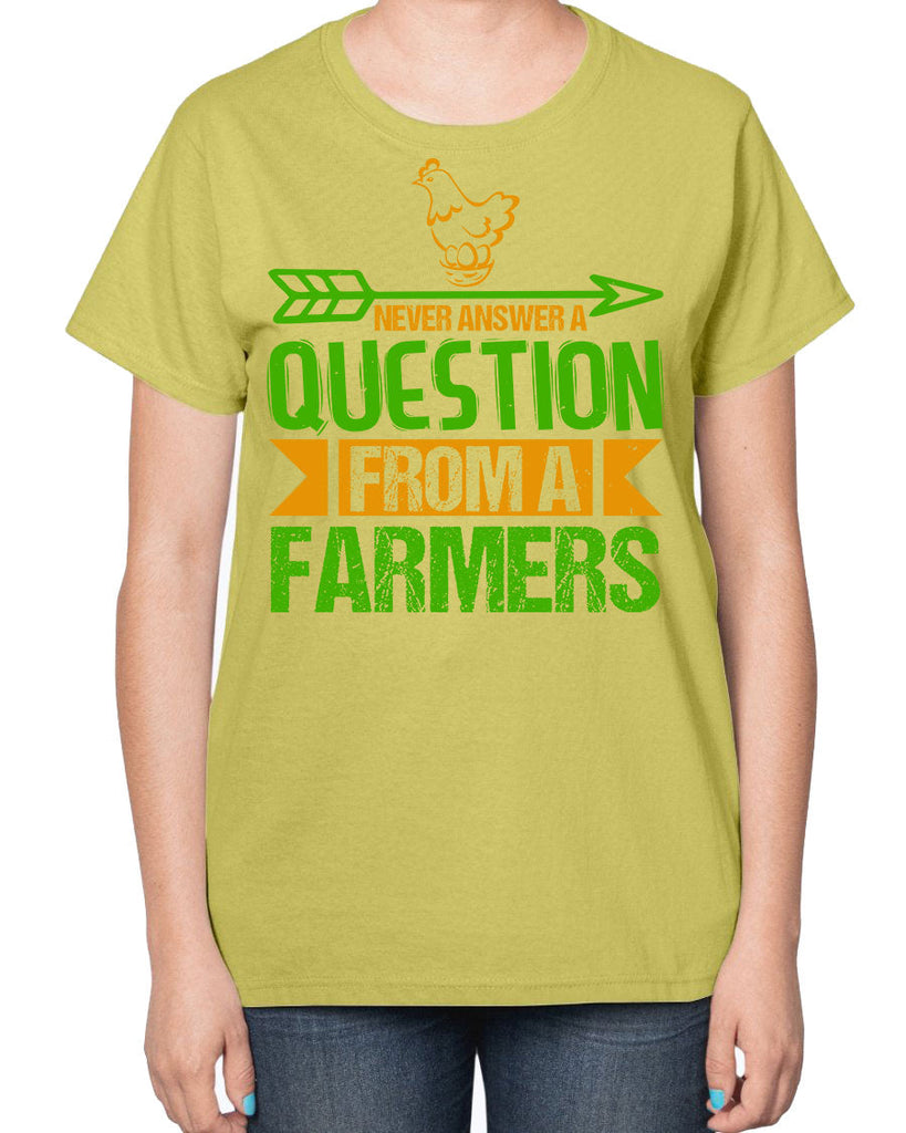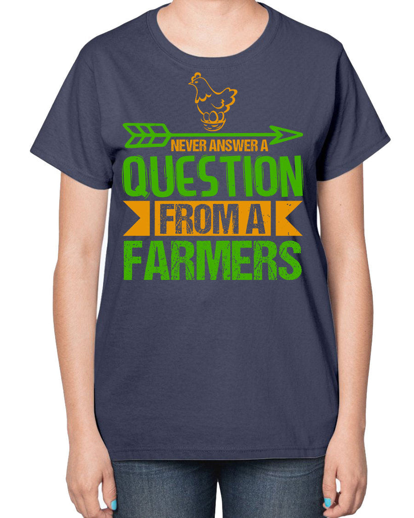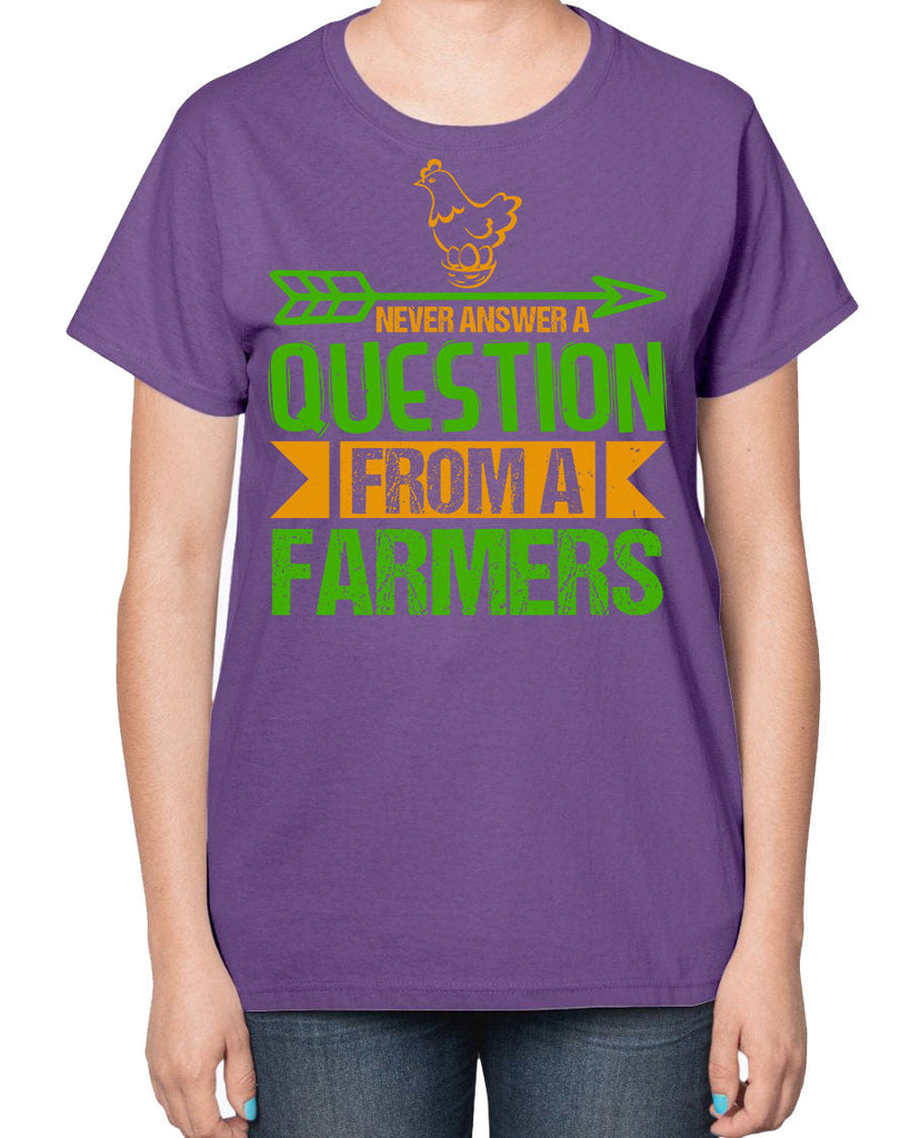 Never answer a question from a farmers - Farm & Garden- Ladies T-Shirt