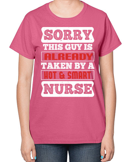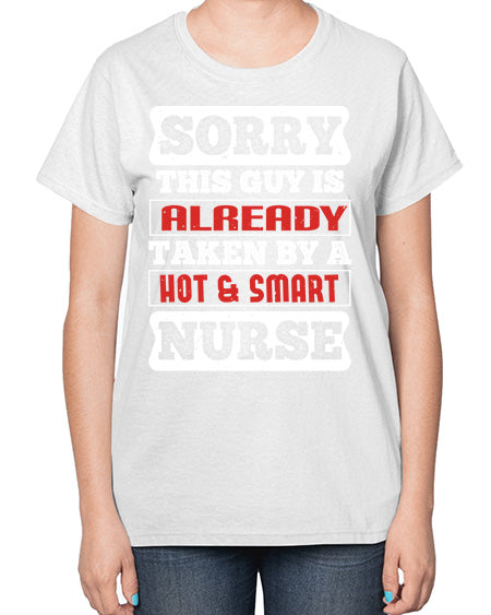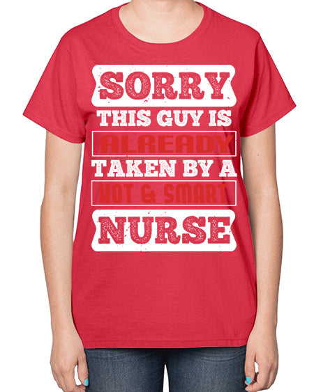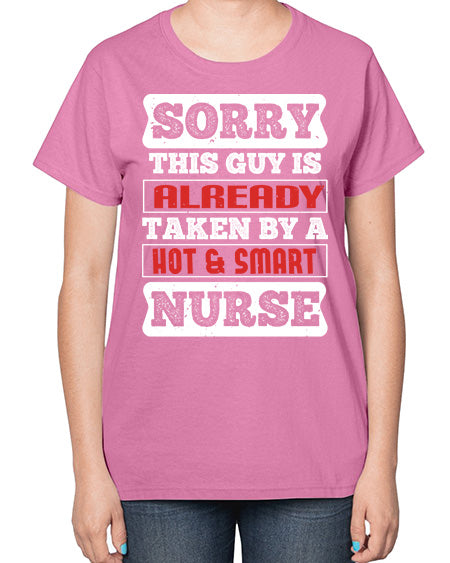 SORRY THIS GUY IS ALREADY TAKEN BY A HOT SMART NURSE Style 1423# - nurse- Ladies T-Shirt