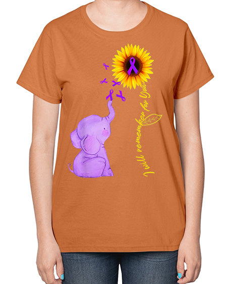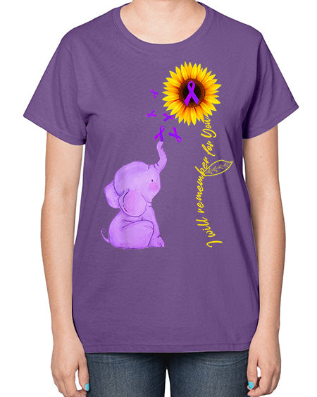 Sunflower Alzheimer Awareness shirt I Will Remember For You 215# - alzheimers- Ladies T-Shirt