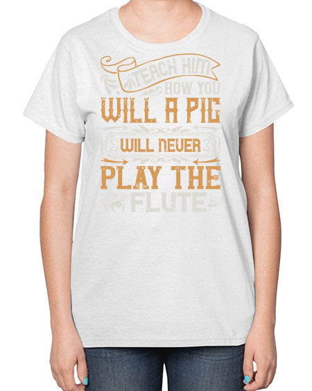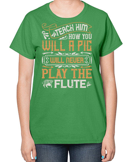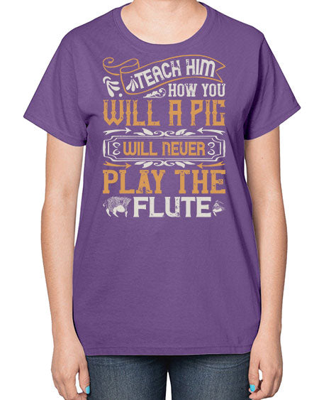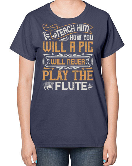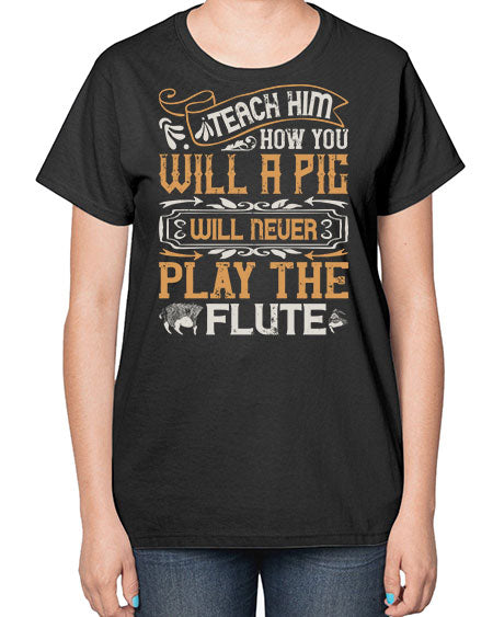 Teach him how you will a pig will never play the flutee Style 26# - pig- Ladies T-Shirt