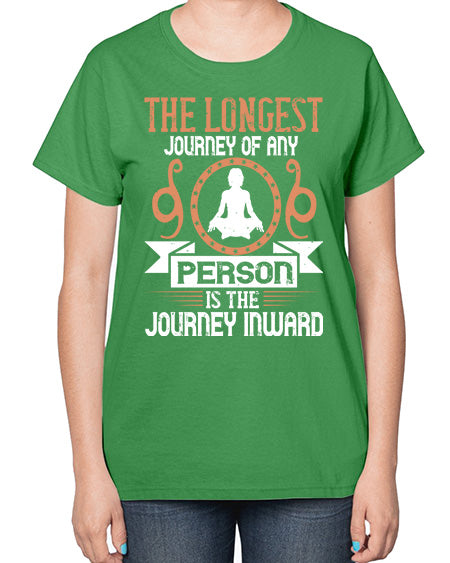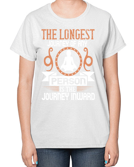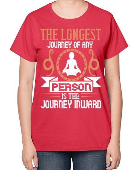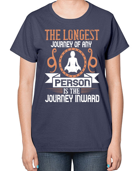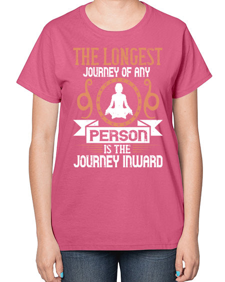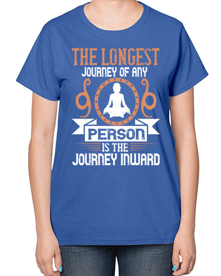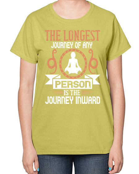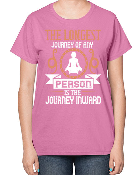 the longest journey of any person is the journey inward 550# - yoga- Ladies T-Shirt