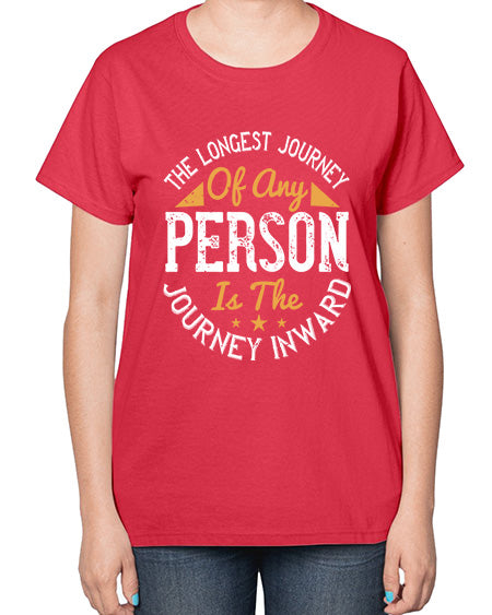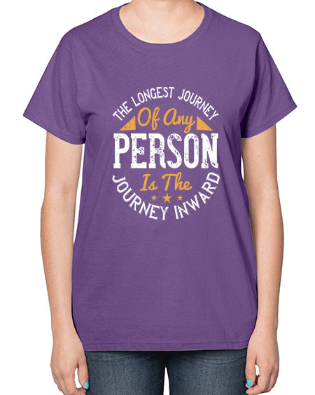 the longest journey of any person is the journey inward 551# - yoga- Ladies T-Shirt