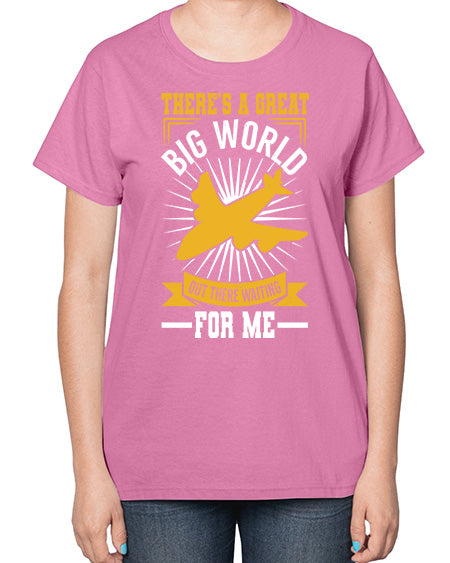 theres a geat big world waiting for me 42# - airplane- Ladies T-Shirt