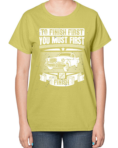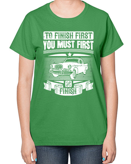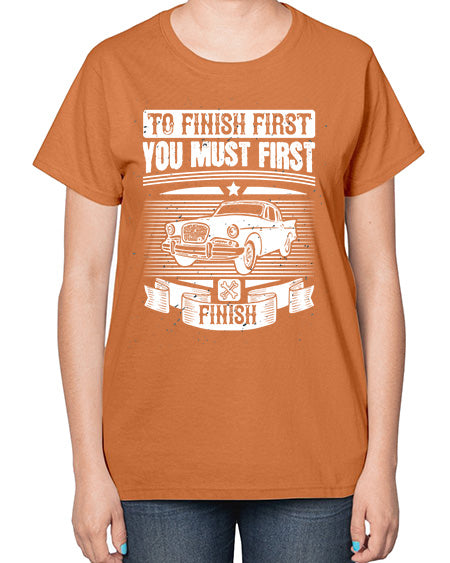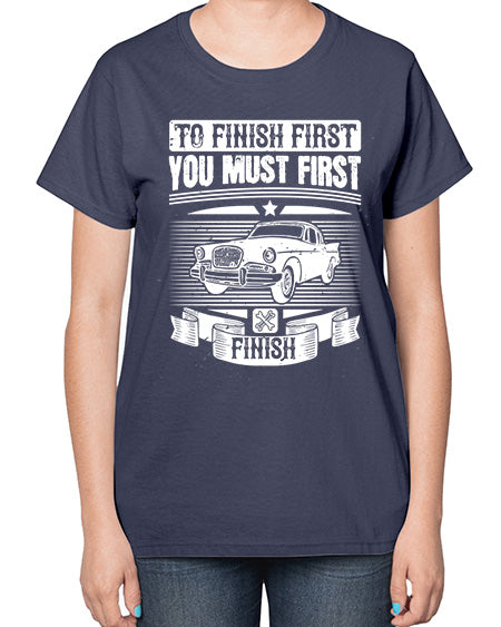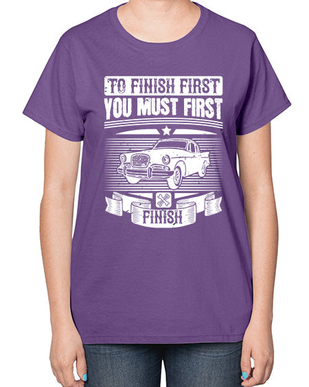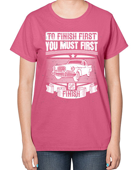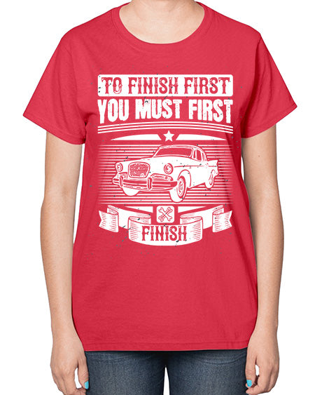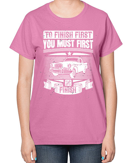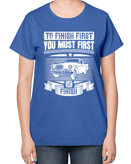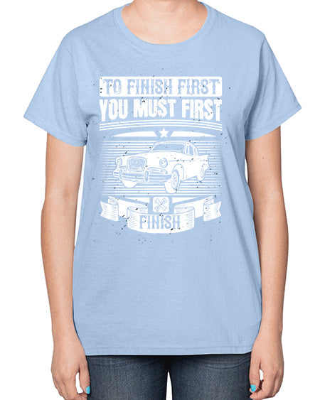 To finish first you must first finish 75# - car- Ladies T-Shirt