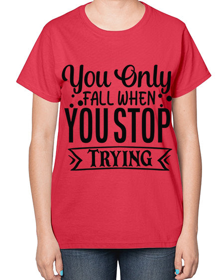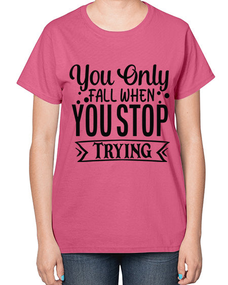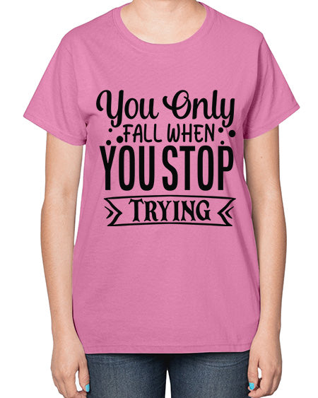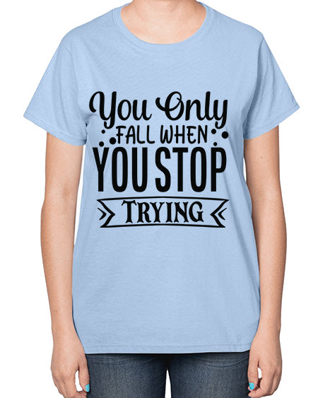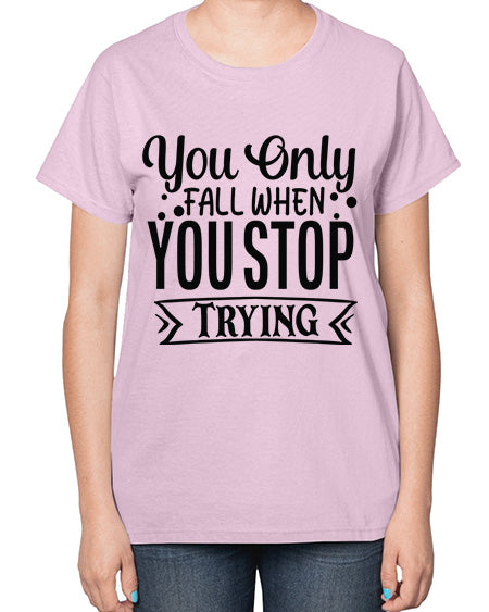 you only fall when you stop trying Style 56# - motivation- Ladies T-Shirt