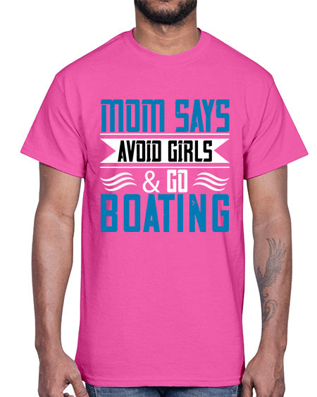 Mom says avoid girls go Boating 28#- boats- Cotton Tee