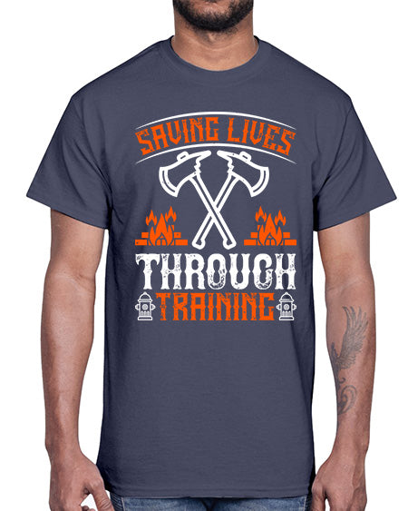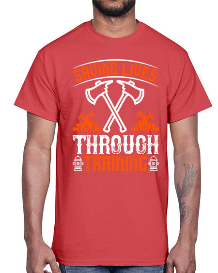 Saving lives through training Style 1372#- fire fighter- Cotton Tee