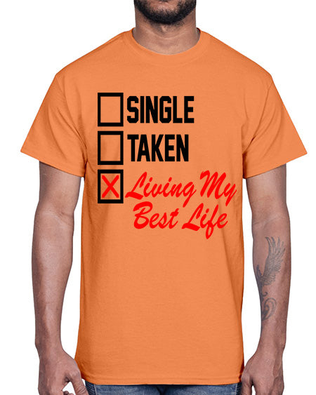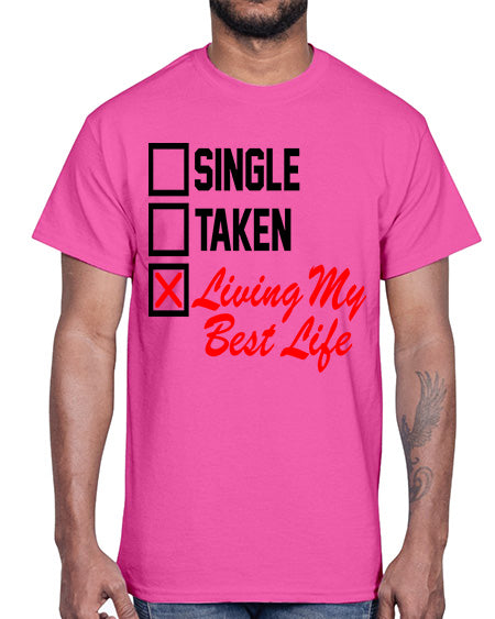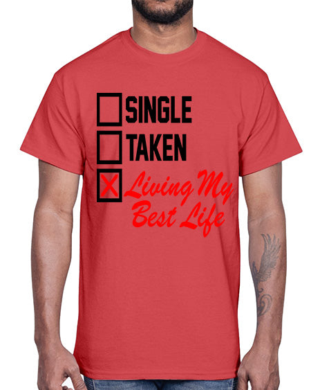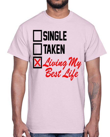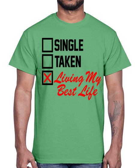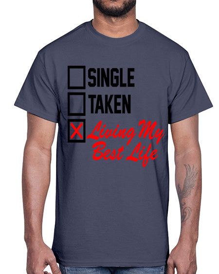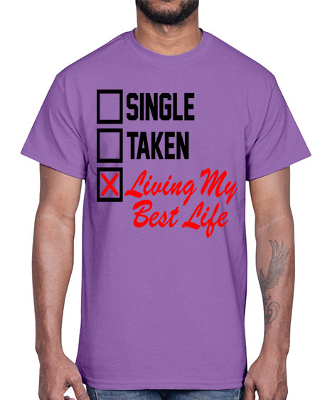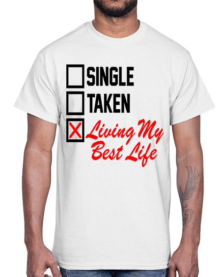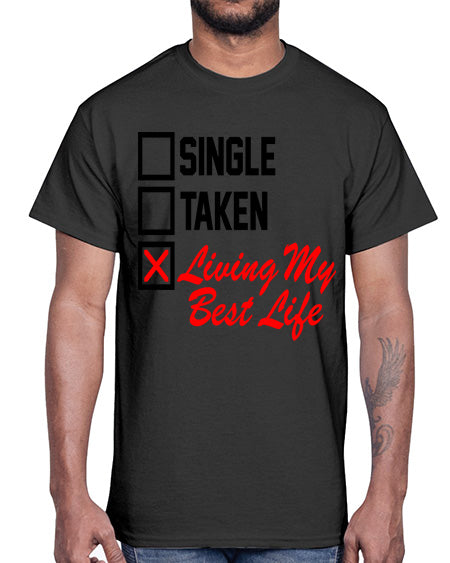 single taken living my best life 34#- black words and phrases- Cotton Tee