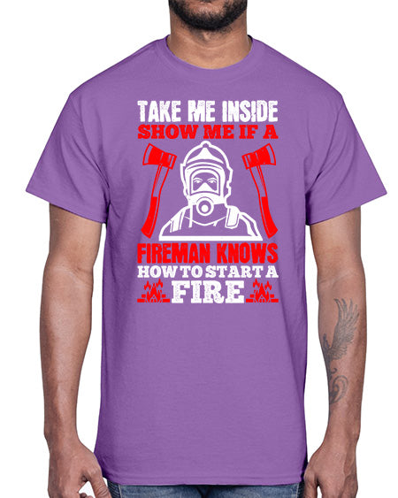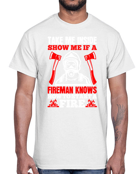 take me inside show me if a fireman knows how to starta fire Style 1437#- fire fighter- Cotton Tee