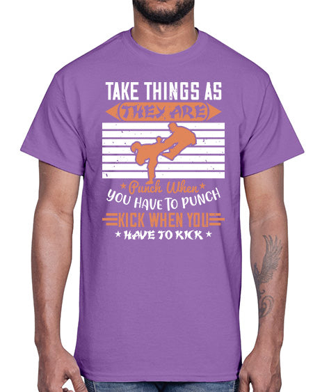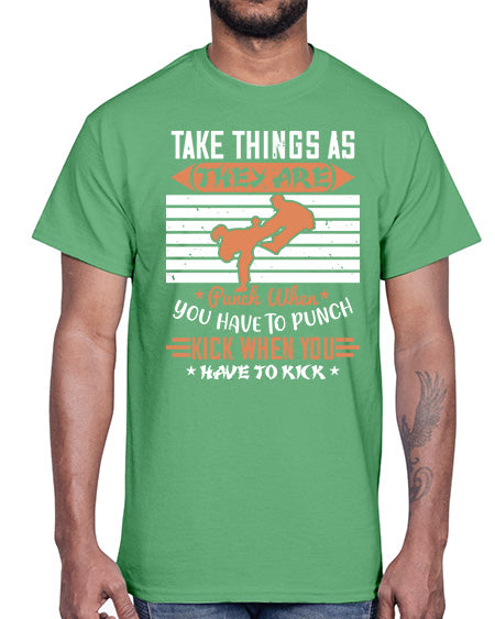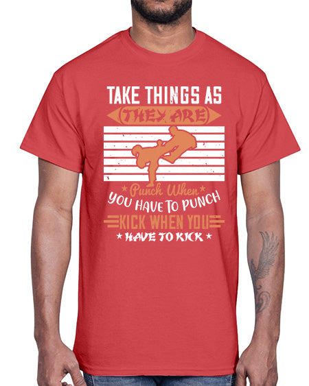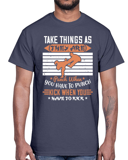 take things as they are punch when you have to punch kick when you have to kick 536#- karate MMA- Cotton Tee