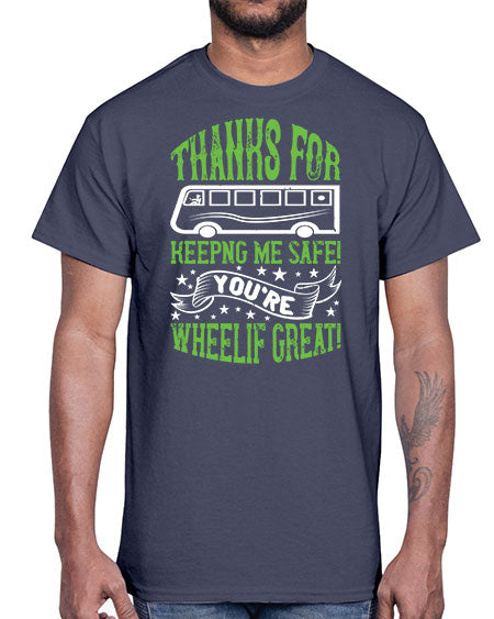 thanks for keepng me safe youre wheelif great Style 1493#- Bus Driver- Cotton Tee
