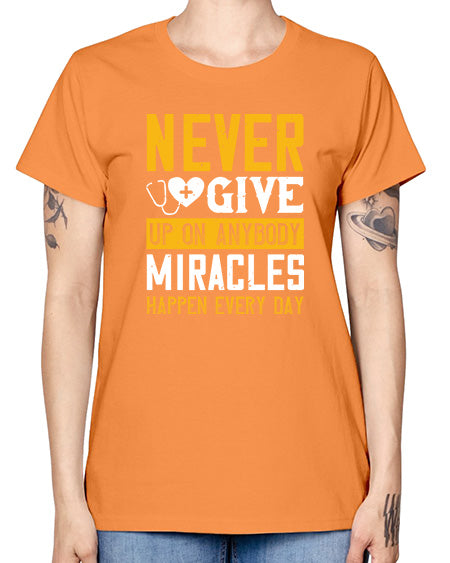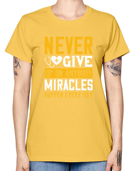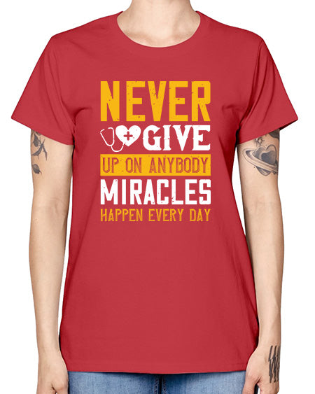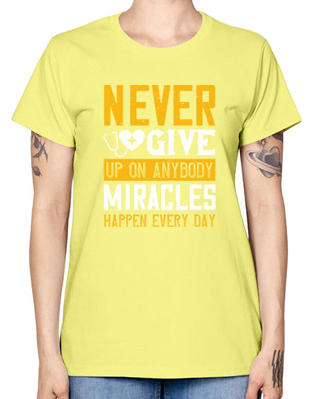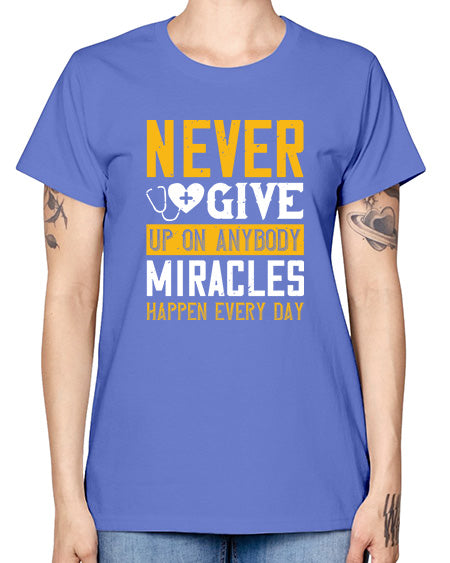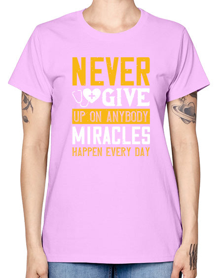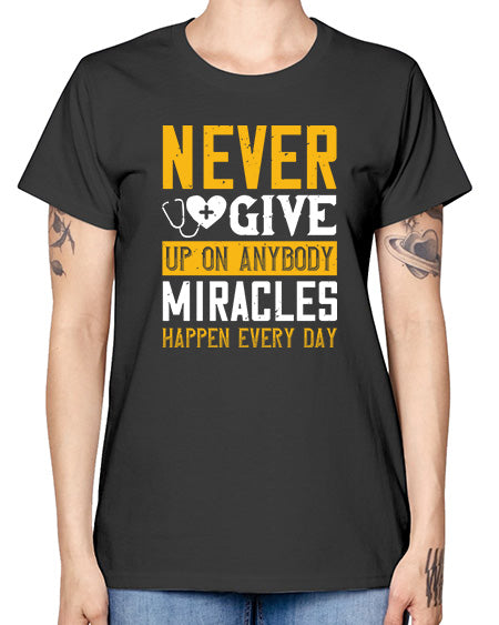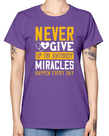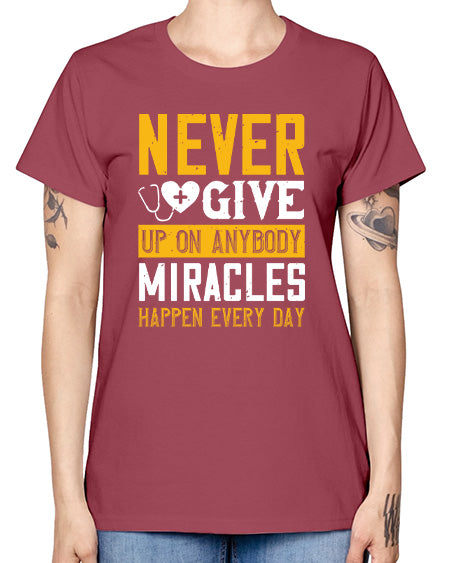 Never give up on anybody Miracles happen every day Style 309# - nurse- Missy T-Shirt