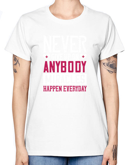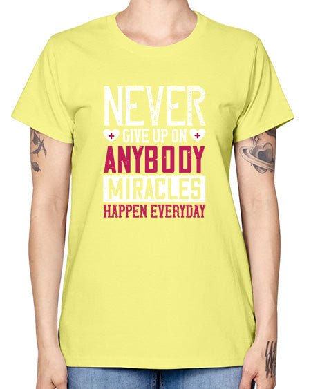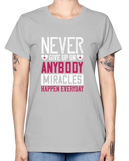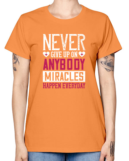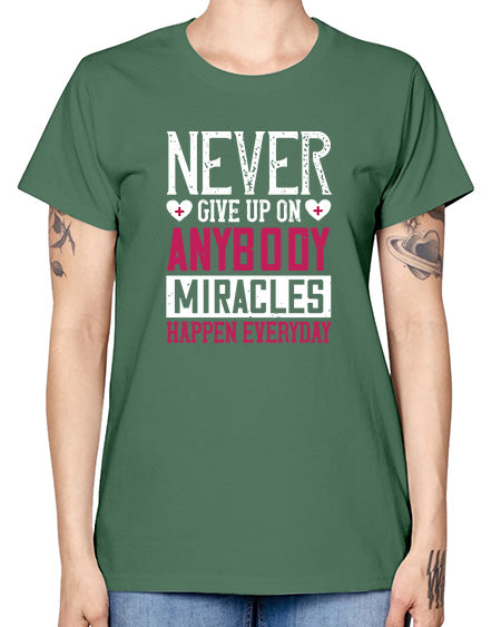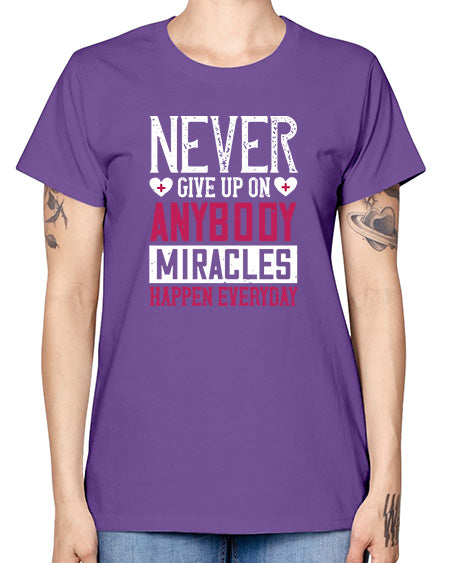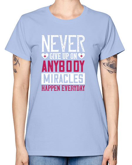 Never give up on anybody Miracles happen everyday Style 310# - nurse- Missy T-Shirt