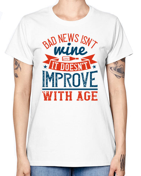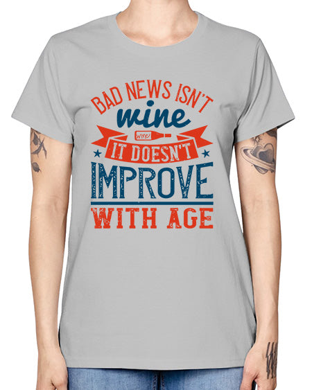 bad news isnt wine it doesnt improve with age 33# - wine- Missy T-Shirt