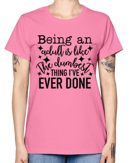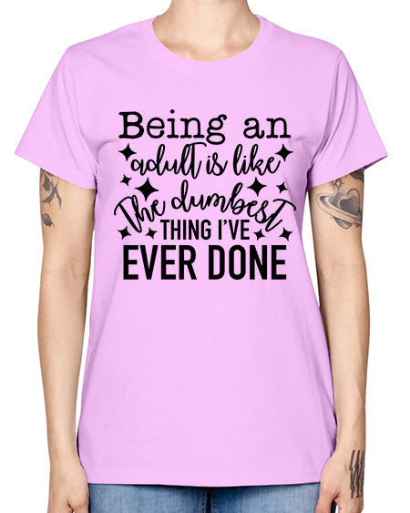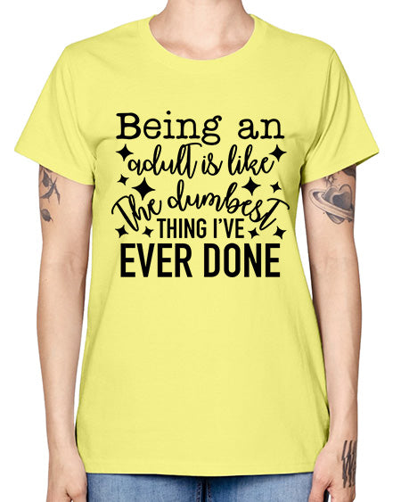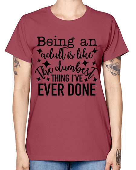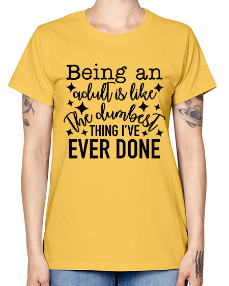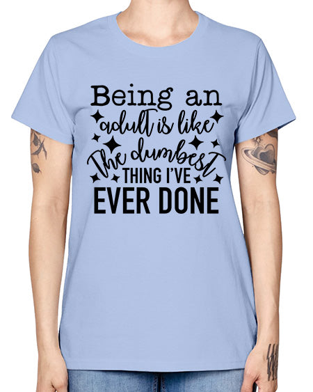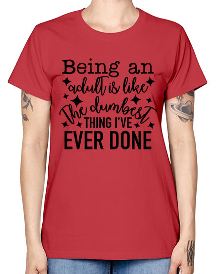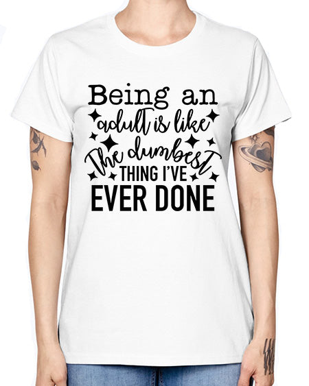 being an adult is like the dumbest thing ive ever done 258# - graphic- Missy T-Shirt