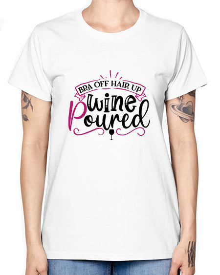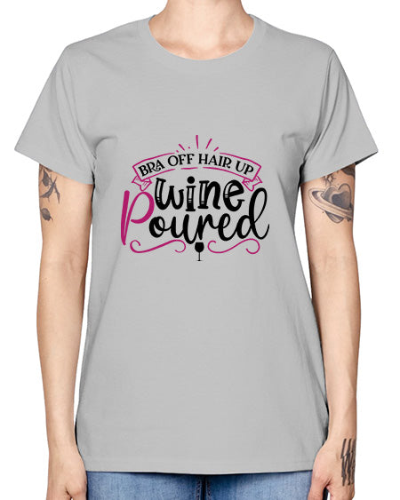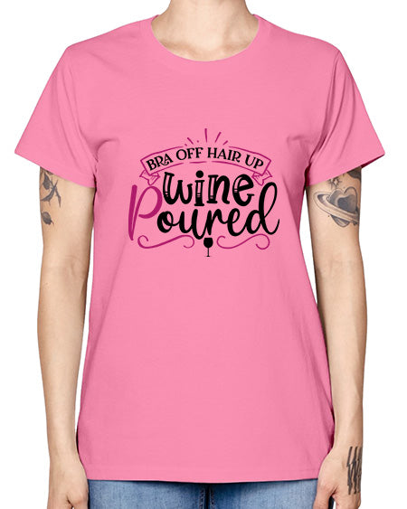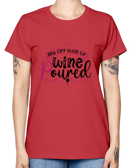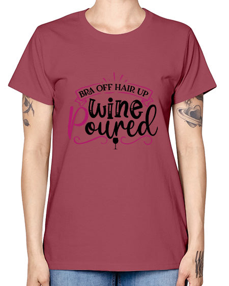 bra off hair up wine poured 62# - wine- Missy T-Shirt