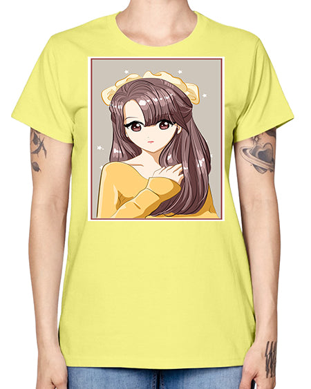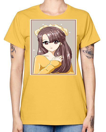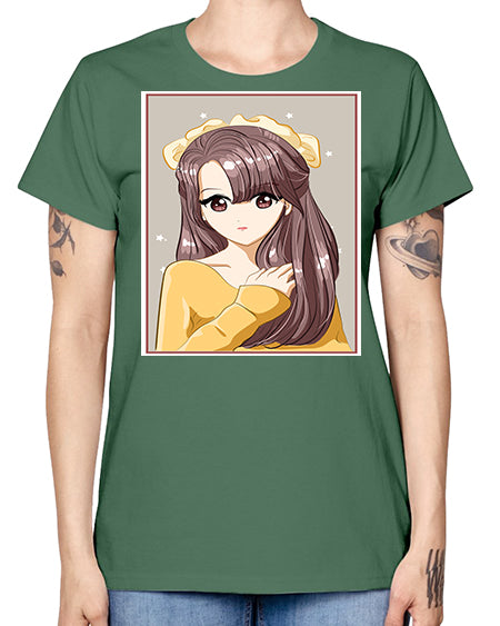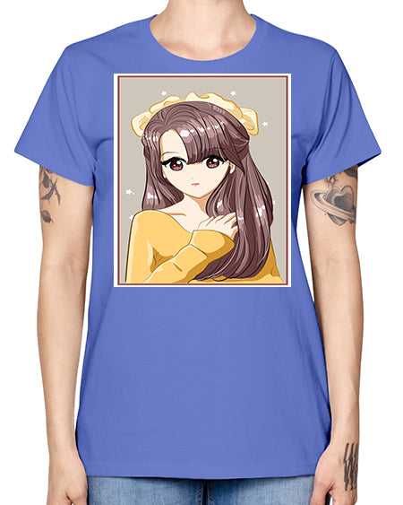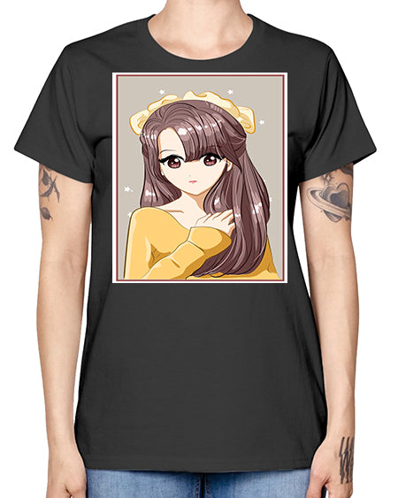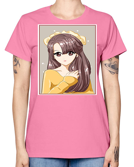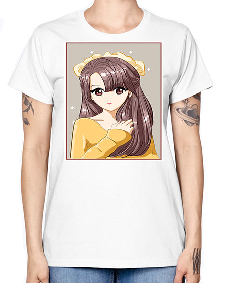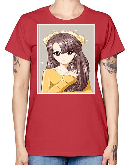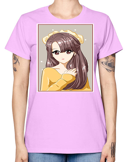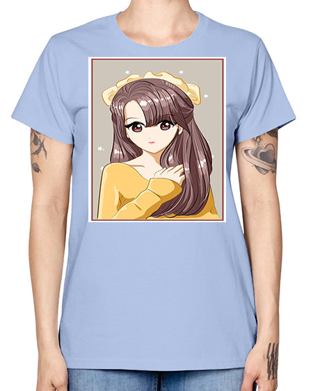 Cute and beautiful girl brown long hair and ribbon 136# - anime - Missy T-Shirt