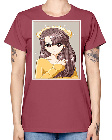 Cute and beautiful girl brown long hair and ribbon 136# - Sub- Missy T-Shirt