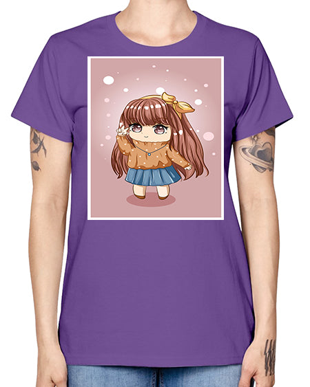 Cute and beautiful little girl long brown hair 149# - anime - Missy T-Shirt